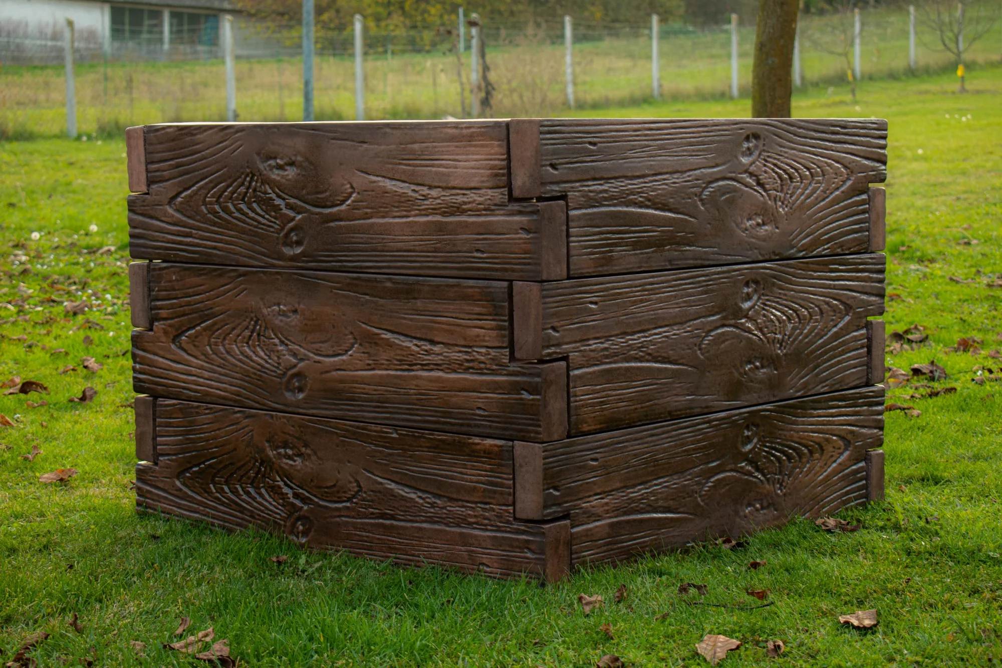- Élethű faerezet: A részletgazdag textúrának köszönhetően a magaságyás nemcsak egy hasznos eszköz, hanem minden kertben mutatós, természetes hatású kertdísz is.