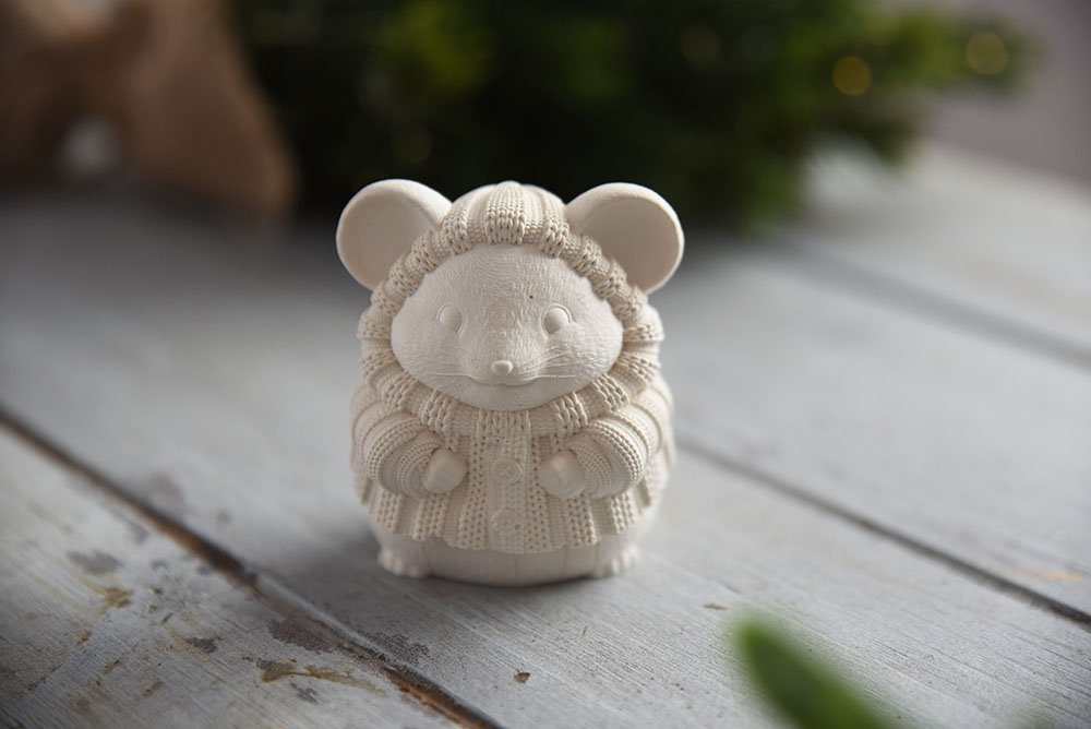 Varázsolj barátságos hangulatot otthonodba ezzel a bájos, kézzel készült egérke dekorral. Ez az aprólékosan kidolgozott gipszfigura a minimalista elegancia és a természetes báj ötvözete. Tökéletes választás polcdísznek vagy egy kedves ajándéknak, amelyre rápillantva, máris jobb kedvre derít.