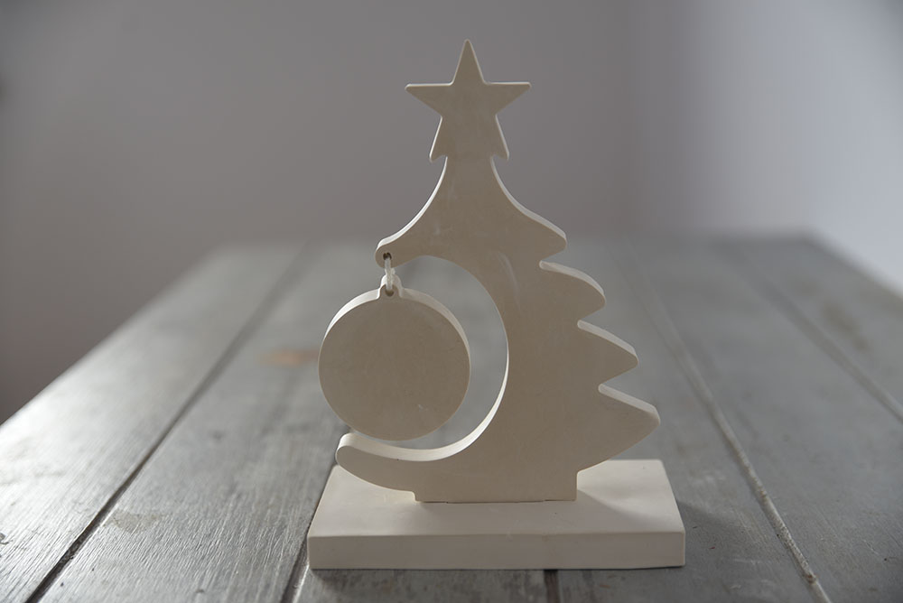 - Kompakt és stabil: A karácsonyfa gipszből készült masszív talpa garantálja a biztonságos elhelyezést bármilyen sík felületen.