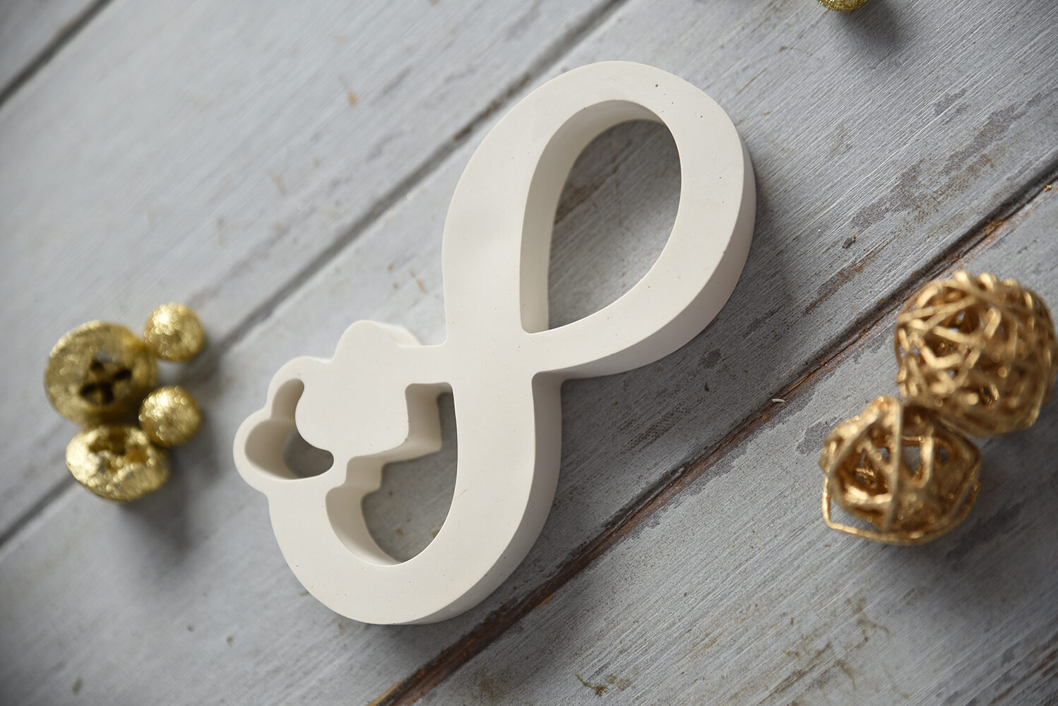 A szeretet kifejezése néha nem igényel szavakat – egy jól megválasztott végtelenszimbólum-figura önmagáért beszél. Ez a kézzel készített gipszszobor a modern minimál stílus és az érzelmi mélység találkozása.
